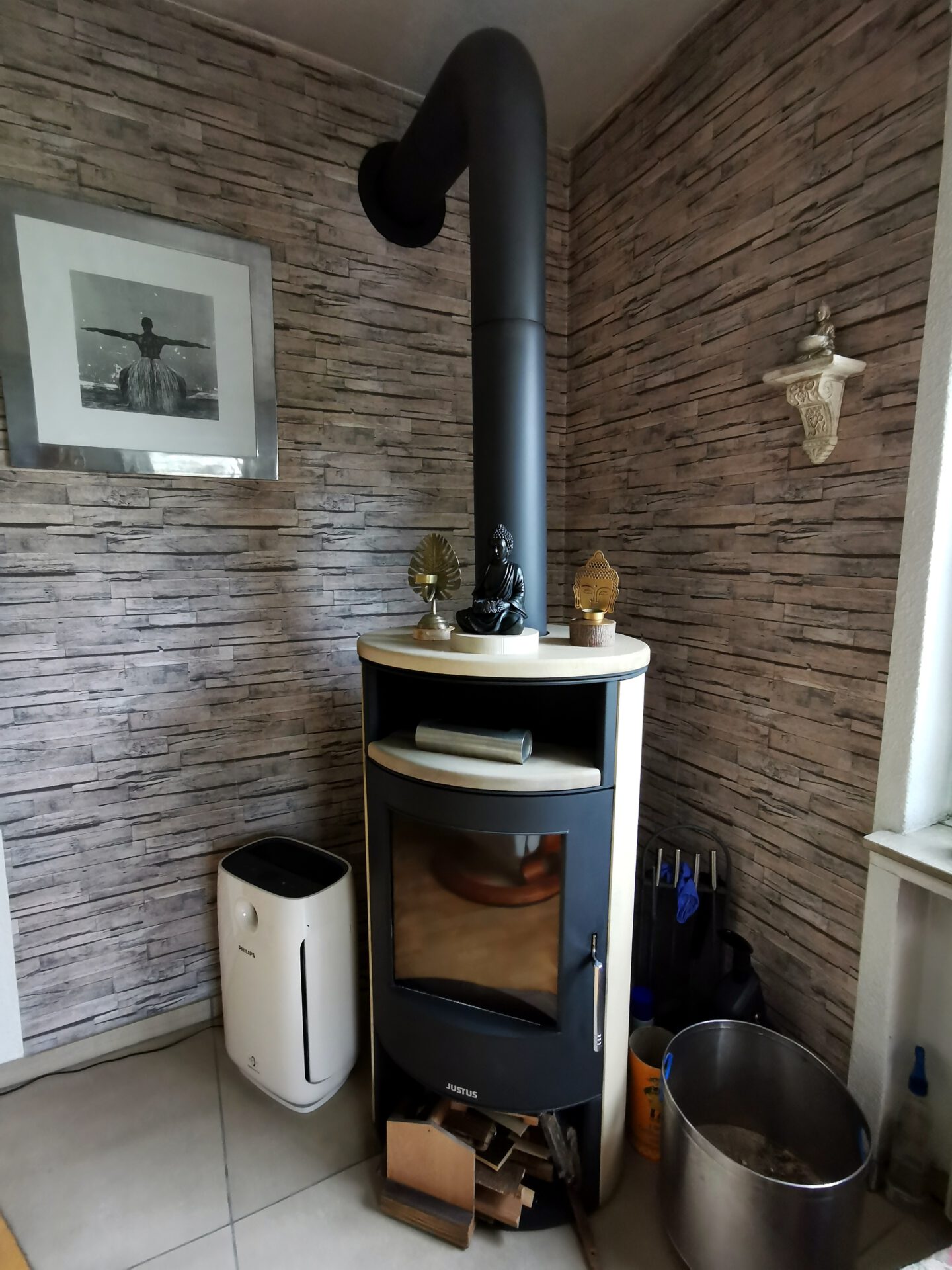 Kamin: wasserführend, an Heizsystem gekoppelt