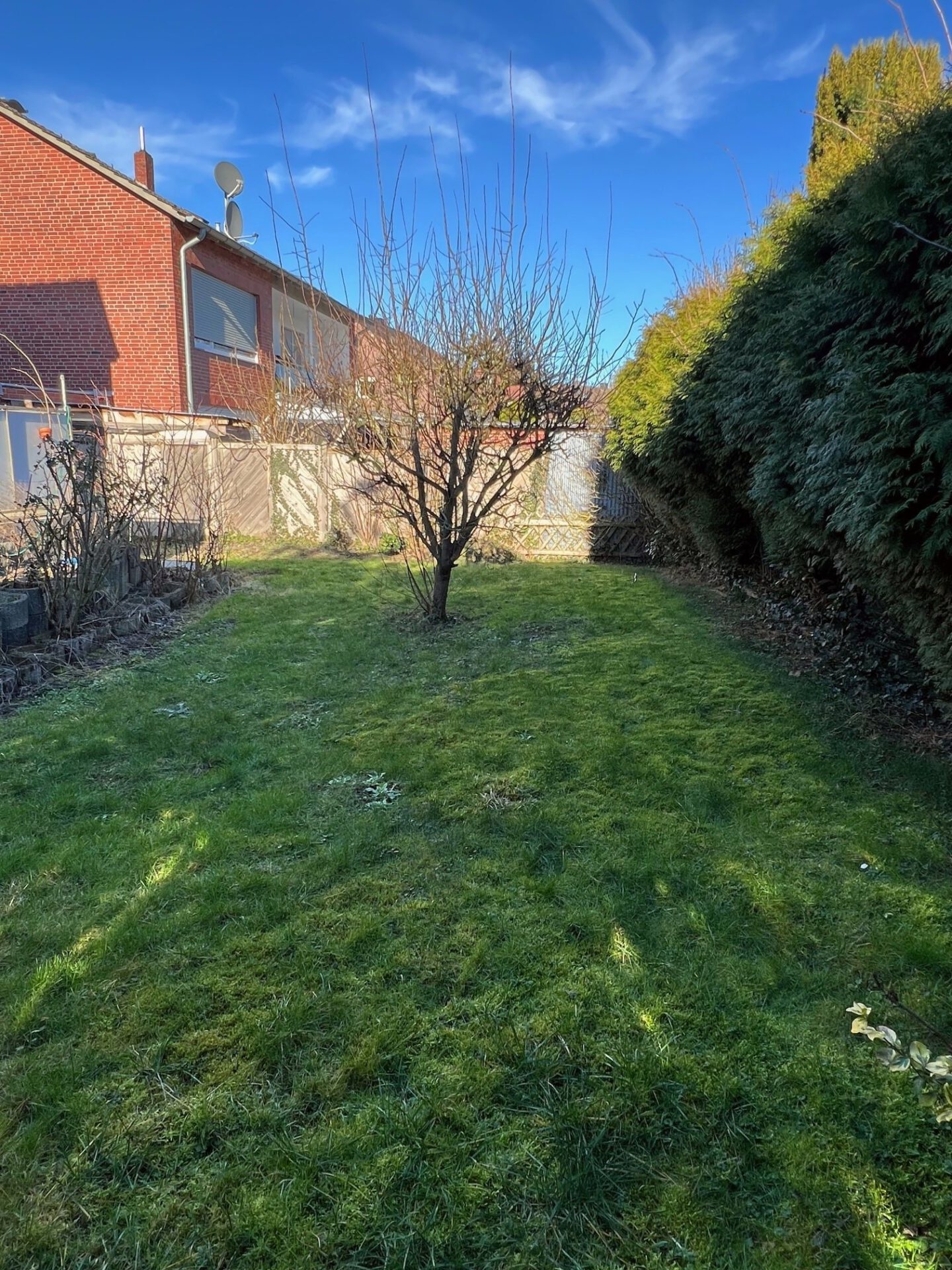 Das 461 m² große Grundstück ist vollständig eingefriedet und bietet durch gewachsene Hecken und Baumbestand eine angenehme Privatsphäre. Die große Terrasse sowie der Gartenbereich laden zum Verweilen ein und bieten ausreichend Platz für individuelle Gestaltung. Die am Haus befindliche Garage wurde so angepasst, dass auch höhere Fahrzeuge wie beispielsweise ein Wohnmobil oder Kastenwagen problemlos untergebracht werden können. Von hier aus besteht ein direkter Zugang in den Keller sowie in den Garten. Ergänzend stehen auf dem Grundstück vor dem Haus weitere Stellflächen zur Verfügung, auf denen mindestens zwei Fahrzeuge hintereinander parken können.