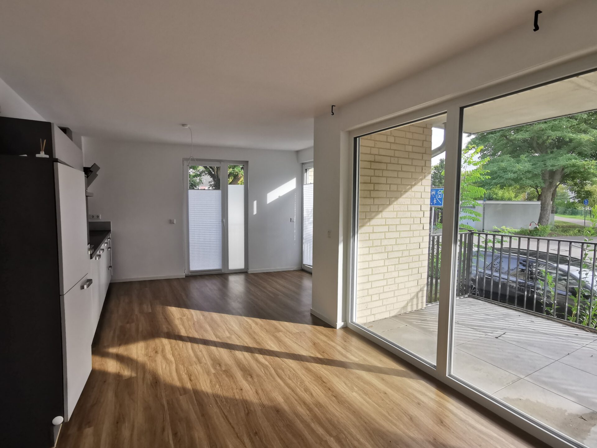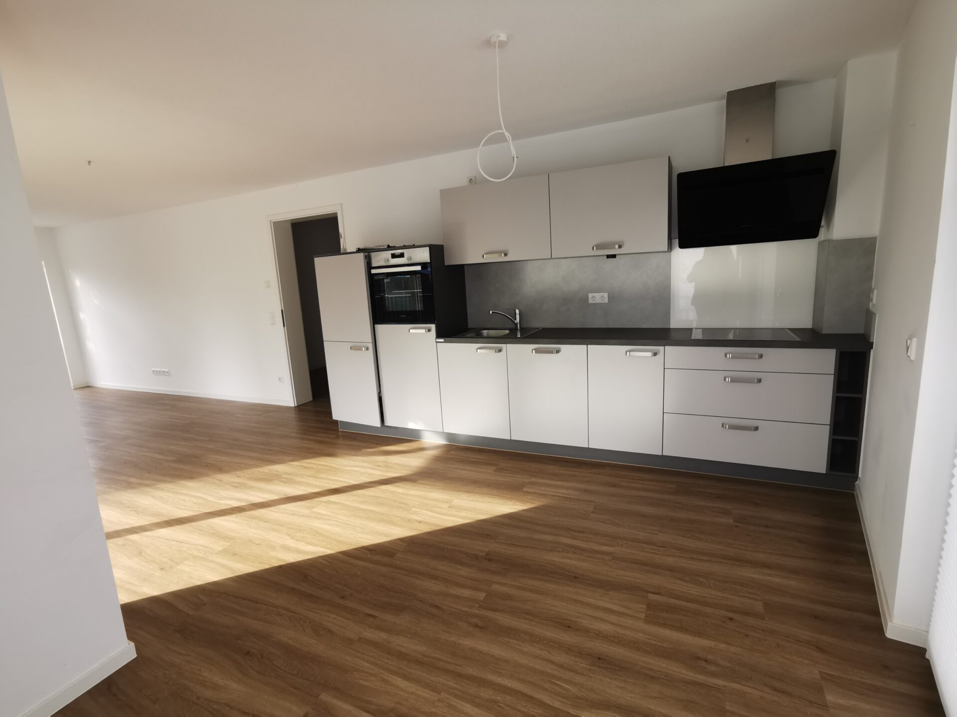 Die Wohnung bietet einen modernen, klar strukturierten Grundriss und ist vollständig barrierefrei gestaltet. Schon beim Betreten überzeugt die großzügige Diele, die viel Platz für Garderobe und Stauraum bietet. Von hier aus gelangen Sie in den offenen Wohn-, Ess- und Kochbereich, der das Herzstück der Wohnung bildet. Die integrierte, hochwertige Nolte-Einbauküche mit Marken-Einbaugeräten von Bosch/Siemens ist im Kaufpreis enthalten und macht einen sofortigen Einzug möglich.